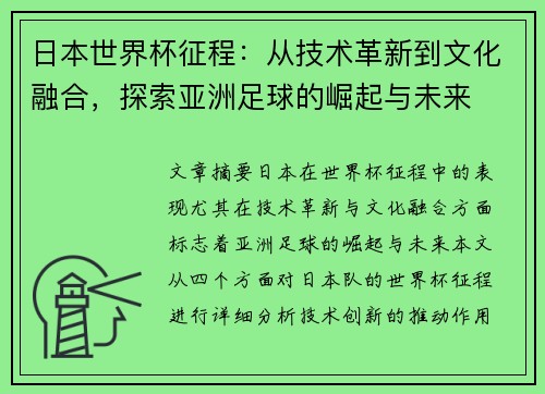 文章摘要的内容:小栗旬世界杯激情之旅:从银幕到球场的完美跨界之路,描绘了这位日本明星如何通过电影和足球的结合,成为全球范围内备受关注的文化现象。从其银幕角色到现实生活中的球场经历,展现了他在两个不同领域的卓越表现和影响力。本文将深入探讨小栗旬在电影与足球之间的独特转换,以及这一现象对其个人及其影响力的深远影响。1、银幕英雄的足球情缘小栗旬作为银幕上的明星,不仅在电影中塑造了许多令人难忘的角色,也因...