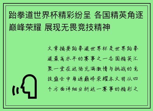 李东国,作为韩国足球队的重要球员,一直以来在国内外赛场上展现了出色的技术与领导力。在世界杯等世界级赛事中,李东国的表现不仅赢得了球迷们的赞誉,也引起了国际媒体和足球专家的广泛关注。本文将围绕李东国领衔韩国队的世界杯表现进行回顾,并探讨其未来发展前景。文章从四个方面展开:一是李东国的比赛技术和领导力;二是李东国在世界杯赛场的具体表现;三是李东国的竞技状态与体能分析;四是未来展望,如何在未来的世界杯中...